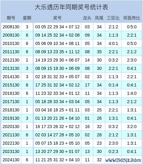 上期的奖号中龙头凤尾分别为03+35,三区比为2:1:2,邻孤传比为0:4:1。